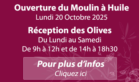 Né en 2002 sur notre exploitation agricole familiale, le moulin transforme notre production d’olives, de tournesol, de colza et de cameline en huiles d’olives et huiles de graines.