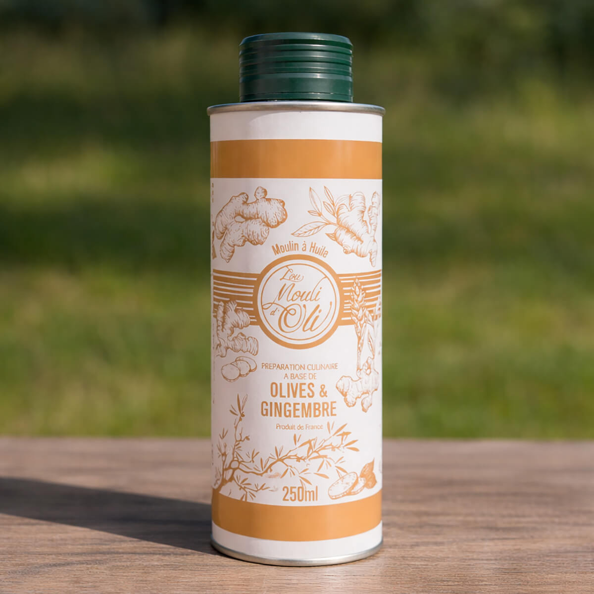 Notre huile d’olive au gingembre est obtenue en travaillant le gingembre frais lors de la fabrication de l’huile. Nous broyons en simultané les olives et le gingembre.